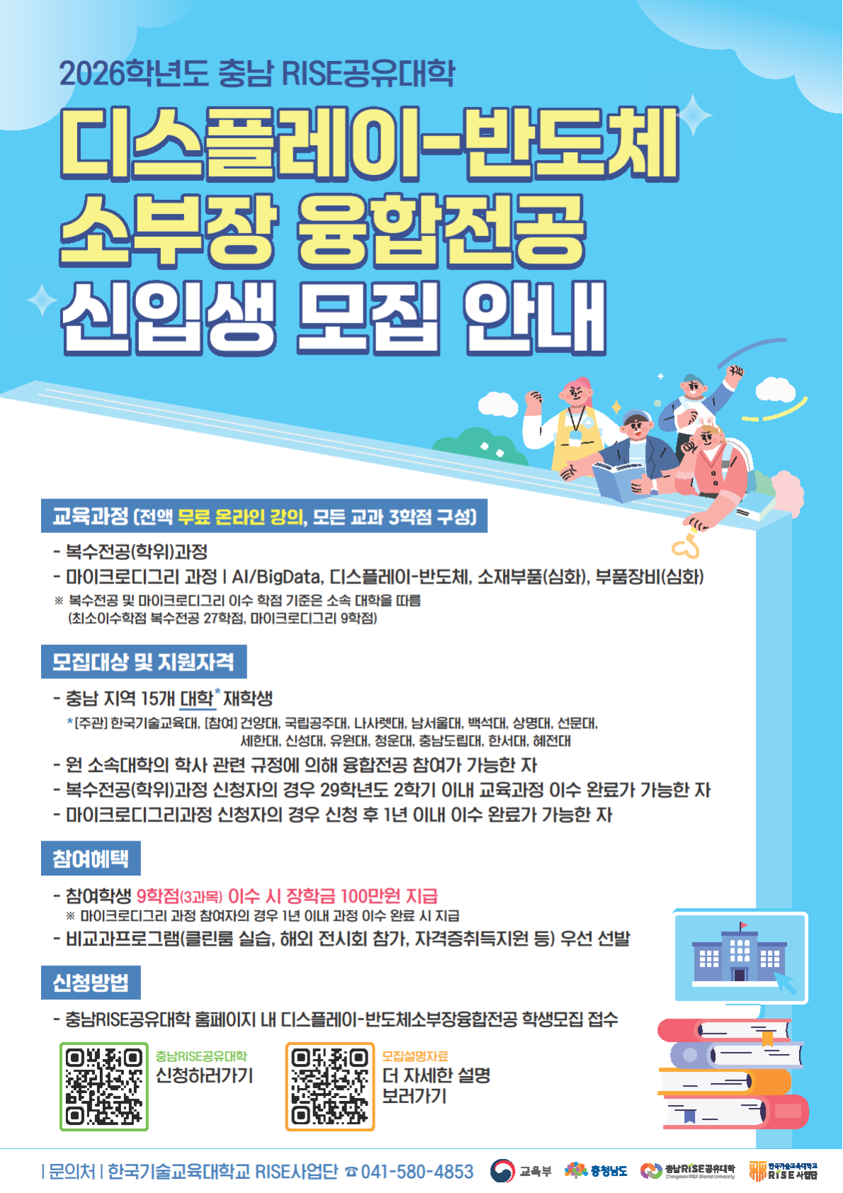 | 제목 | 2026학년도 충남 RISE 공유대학 디스플레이-반도체소부장융합전공 학생 모집 | ||||
