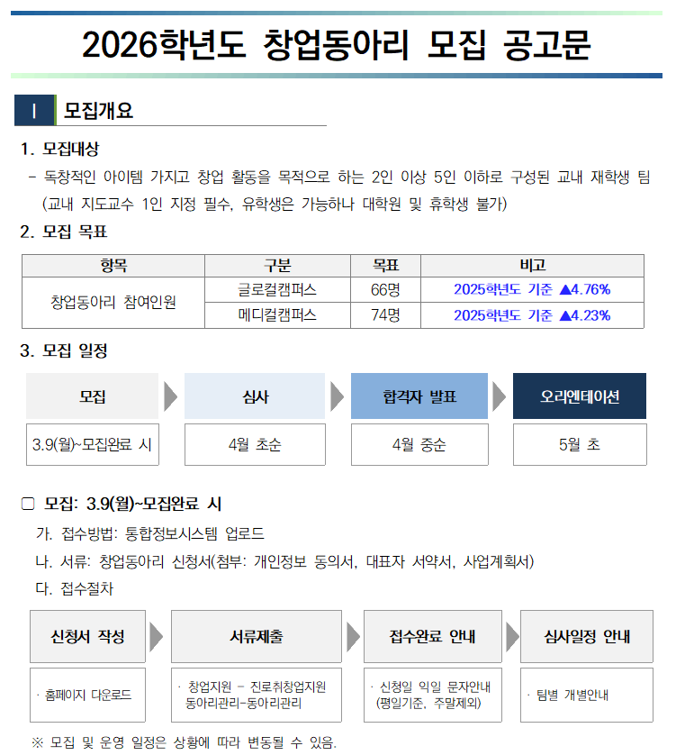 | 제목 | 2026학년도 창업동아리 모집 안내 | ||||