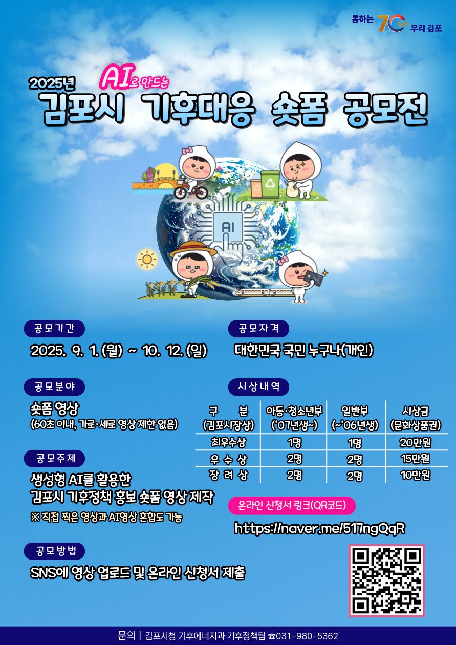 | 제목 | 2025년 김포시 AI로 만드는 기후대응 숏폼 공모전 | ||||